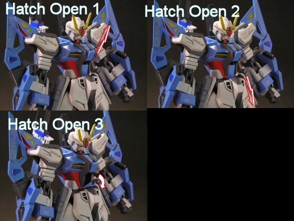 ■ NOIR ver 2.0に同じく、今回もハッチ展開ギミックを仕込んでいます。写真では見えていませんが、コクピットシールド奥にシャッターのモールドも彫り込んでいます。シールド展開に伴い、干渉する腰部センターアーマーが下方にスライドする点も前回と同じですが、前回若干外れやすい弱点を抱えていたので、この点を解消。一定のところでストップするようになっているので取り扱いやすくなっています。