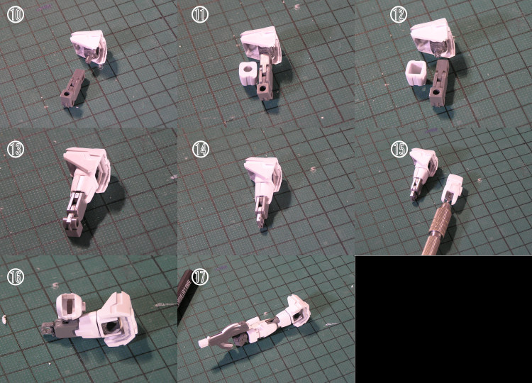 ■ ジム クゥエルの肘関節パーツを移植して、二重関節化工作を行いました。右腕についても同じ工作を行いますが、実際の作業は以下の通りです。