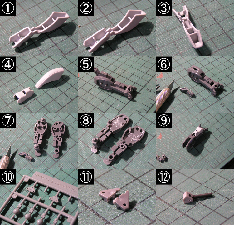 6: 写真の部分で切離し。使い古しのニッパーで大まかに切り込んだ後、ナイフで成形。