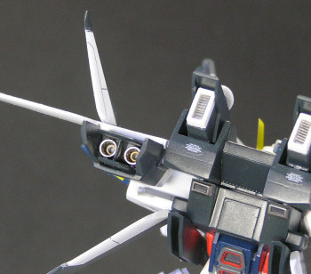 ■ 肩口のマシンキャノンが貧弱だったので、MGの意匠を参考に作り直し。上部の砲門もパイプを入れ込んでディティ−ルUP。